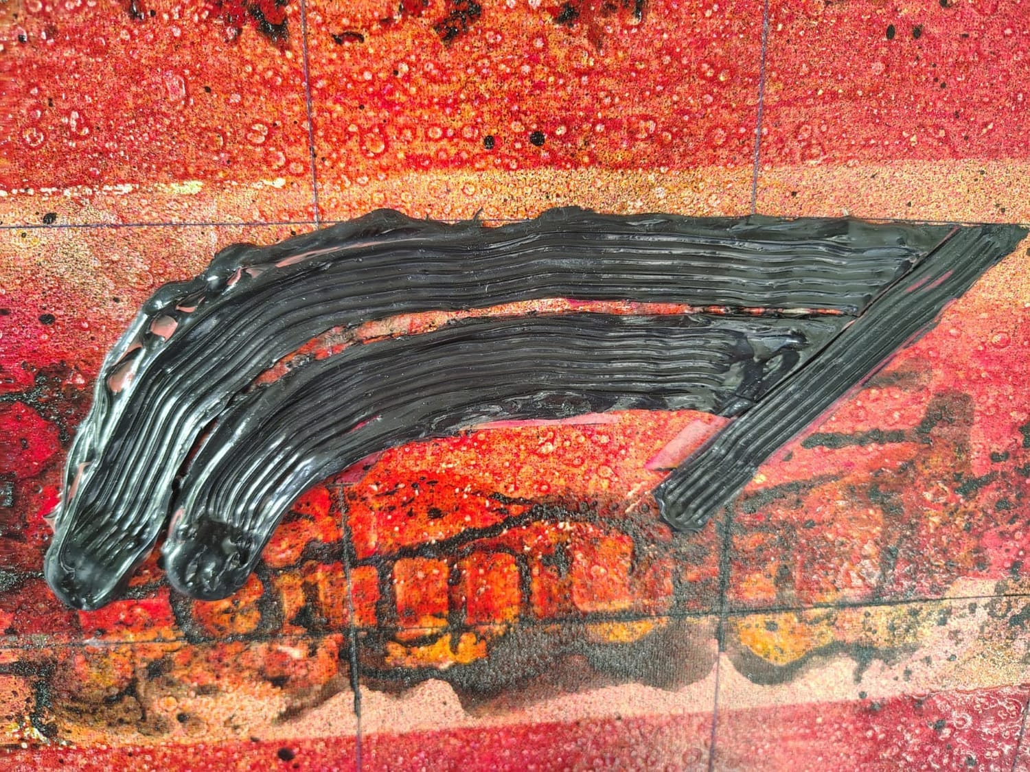 Me interesa desarticular la lógica del diseño, desprenderme de su finalidad comunicacional y reconfigurar esos mismos signos como materia artística viva. En ese proceso investigo con mezcla de técnicas, capas de pintura acrílica, relieves, trazos manuales y decisiones intuitivas que buscan despojarlos de su sentido comercial para convertirlos en presencia poética.