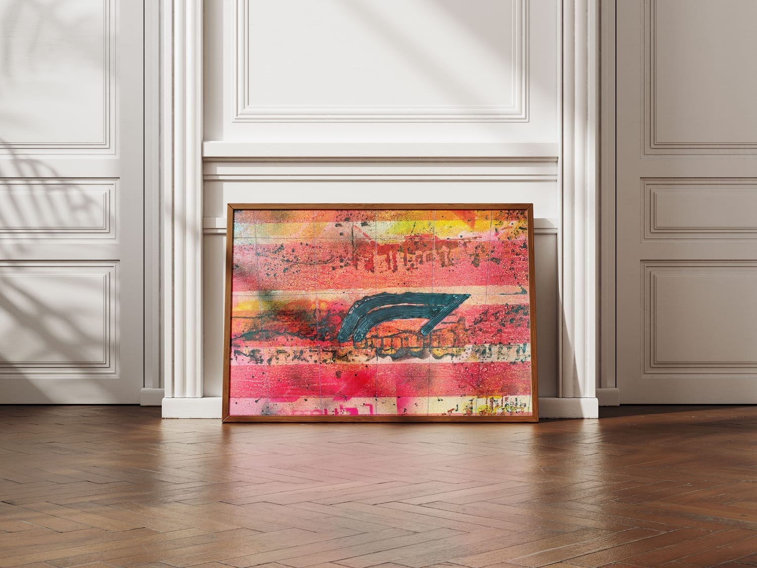 En esta pieza encuentro una puerta: el instante en que un símbolo pensado para el consumo deja de ser señal y se convierte en energía visual, en movimiento atrapado sobre la superficie. Es el nacimiento de la serie y, al mismo tiempo, un gesto de liberación.